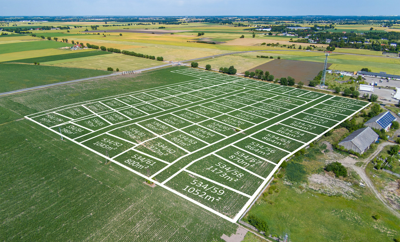 Cena: 500 zł/m² – możliwość zakupu wybranych działek.